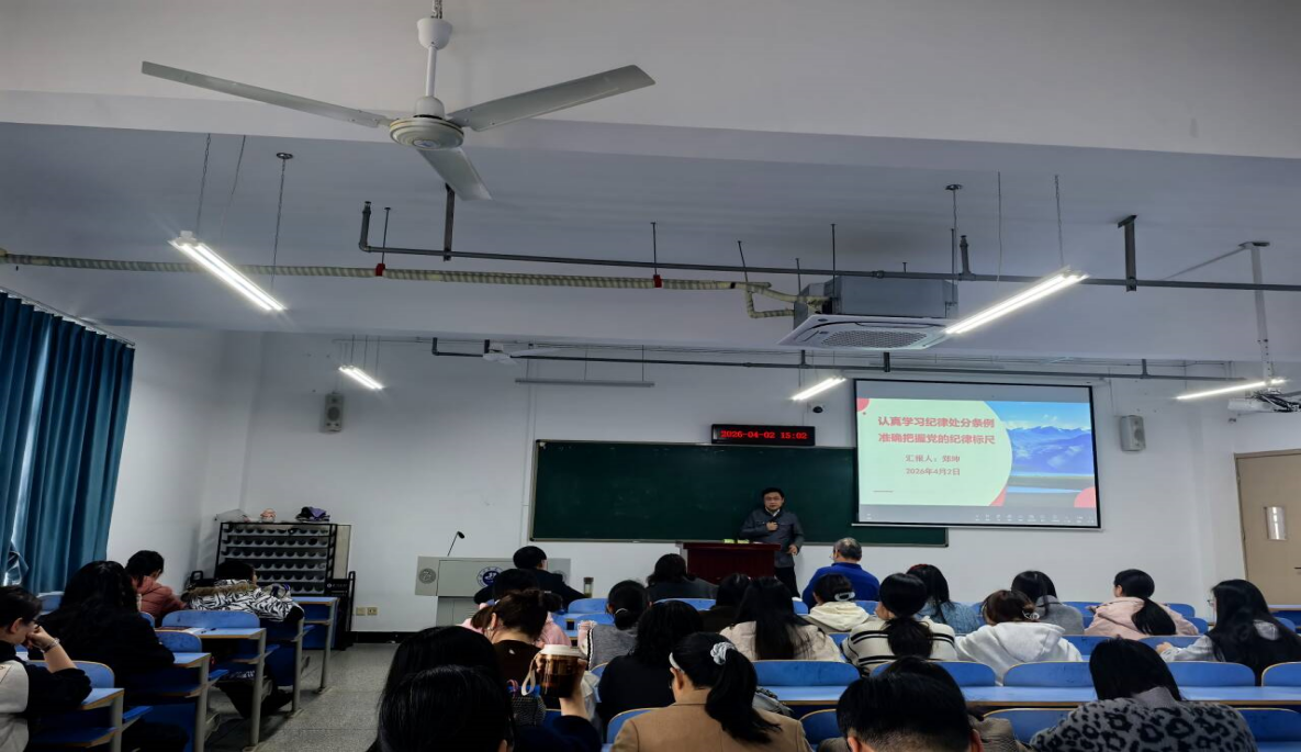 4月2日下午,VSport -(CHINA) 胜利因您更精彩分党委在崇文楼A716举办2026年党员春季培训第三次集中学习。学院领导班子成员、分党委委员、教工支部和学生支部全体党员参加学习。本次培训由VSport -(CHINA) 胜利因您更精彩分党委纪检委员、副教授郑坤主讲,带领全体参训人员专题学习《中国共产党纪律处分条例》(以下简称《条例》)。